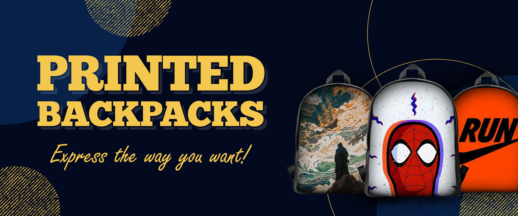 حقيبة ظهر مطبوعة بالكامل باللون الأسود