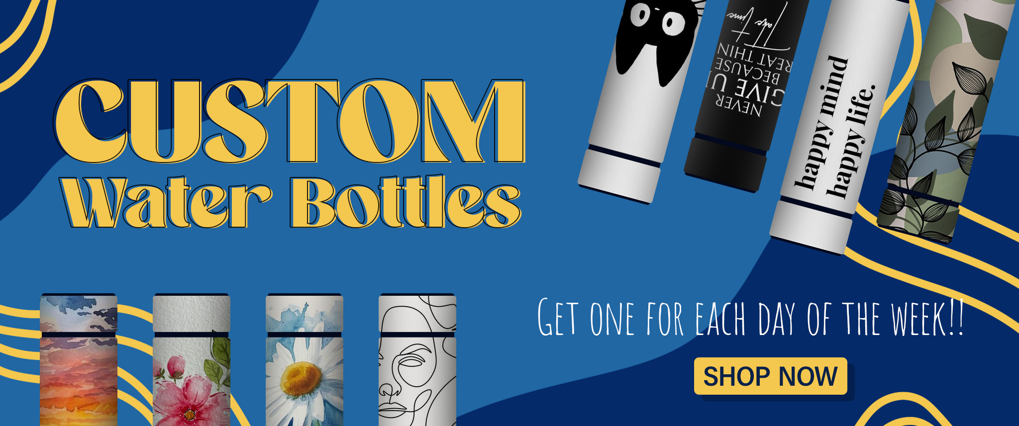 زجاجة مياه مطبوعة بدرجة حرارة بتلات سوداء