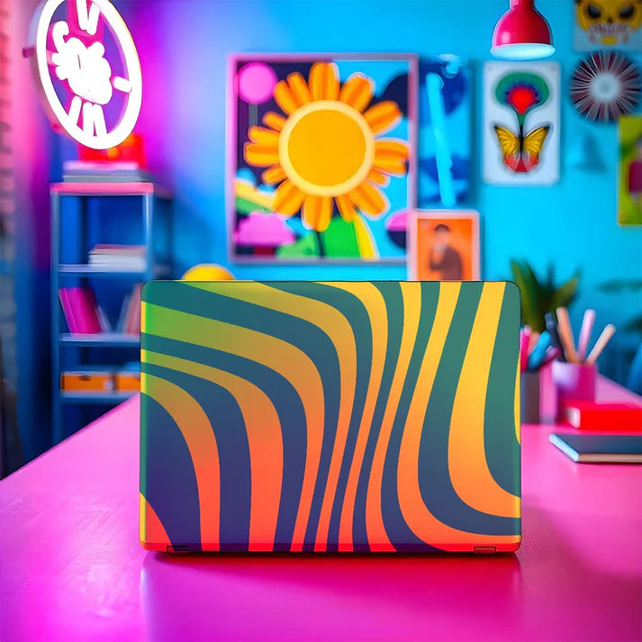 جلد كمبيوتر محمول أصفر أخضر متعرج