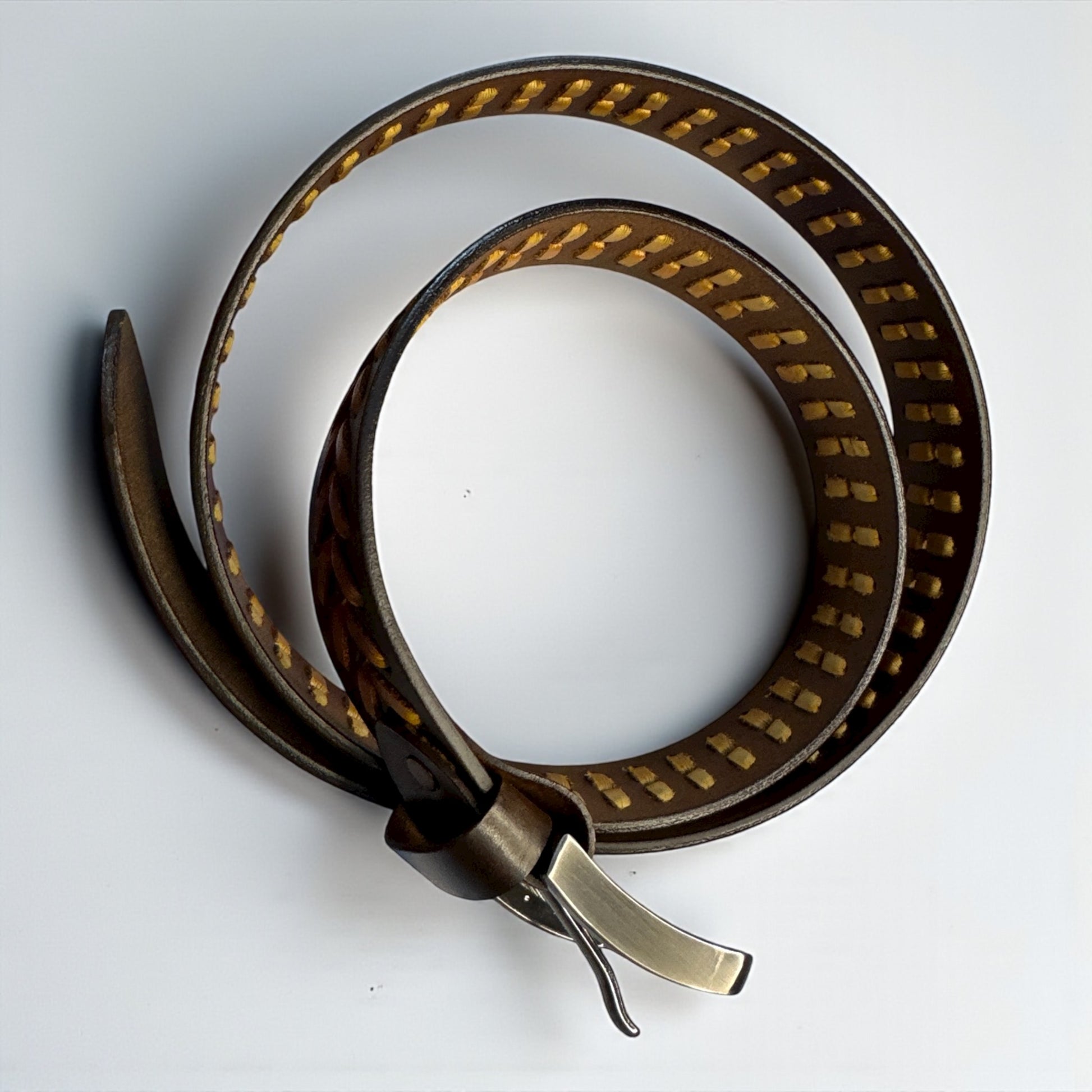 The Ember Weave Belt is a bold expression of craftsmanship and character. Made from premium genuine leather, it features intricate hand-laced detailing in warm amber tones that add depth and style. Durable yet refined, this belt is perfect for those who appreciate artistry in everyday wear.